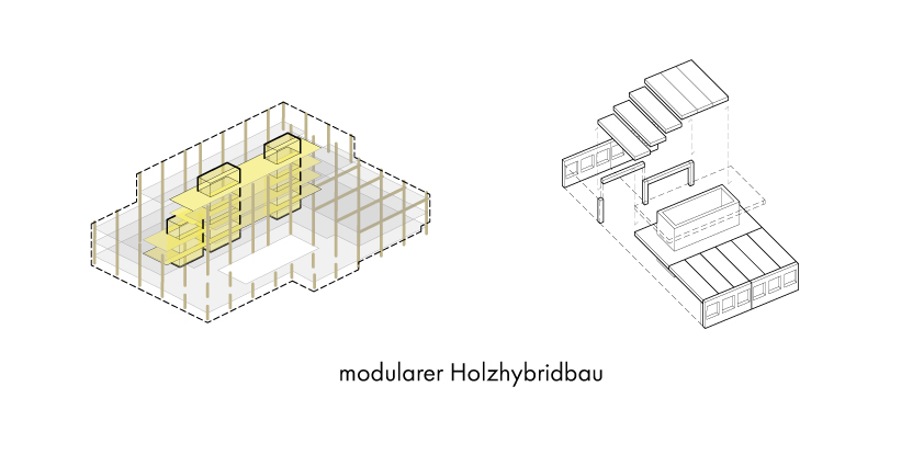 ウィーン市12区の駅前に国立中高一貫校(ギムナジウム)と駅前広場を計画するプロジェクト。建設業界のCO2排出量が圧倒的に多い現状を根本から変えるべく、建設時、運用時、解体時などすべてのライフサイクルを視野に入れた環境にやさしいサステナブルな建築を提案しています。工法や建材は自然素材をできるだけ使い、自然換気、自然エネルギーを取り入れた省エネ設計、工期を短くするモジュール工法を取り入れ、木造5階建てのフレキシビリティの高いプランを設計しています。